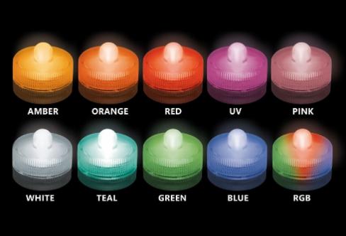 The Submersible Floralyte is available in Amber, Blue, Green, Orange, Pink, Purple, Red, RGB, Teal and White.